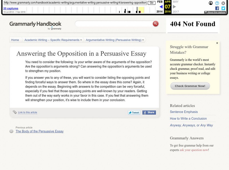 Grammarly Handbook: Answering the Opposition in a Persuasive Essay