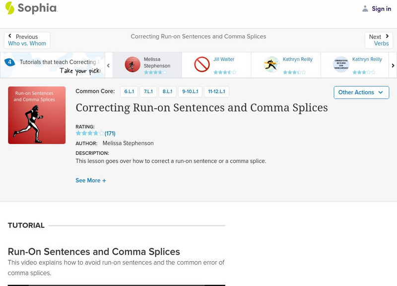 Sophia: Correcting Run on Sentences and Comma Splices: Lesson 2
