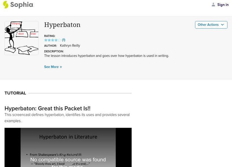 The lesson introduces hyperbaton and goes over how hyperbaton is used in writing. This tutorial lesson shares a short screencast [2:57] with the lesson's content.