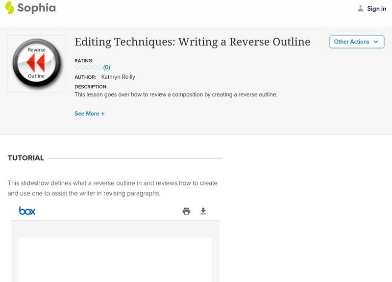 This slideshow lesson focuses on writing a reverse outline as a post writing strategy for assessing your paper for weak or missing aspects. It explains how to create the outline using a rubric if available and provides a skeletal example...
