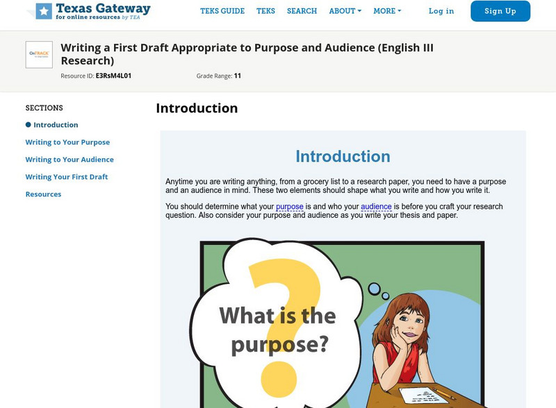 Texas Gateway: Writing a First Draft Appropriate to Purpose and Audience