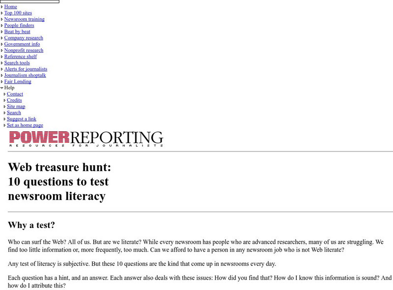 Web Treasure Hunt: 10 Quest. To Test Newsroom Literacy
