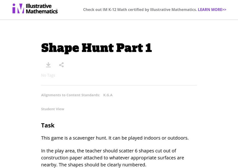 Young scholars will take part in a scavenger hunt for shapes. Teachers will hide numbered, pre-cut shapes around the classroom. Students will hunt for the shapes with a blank paper with 6 empty slots. When the student finds a shape they...