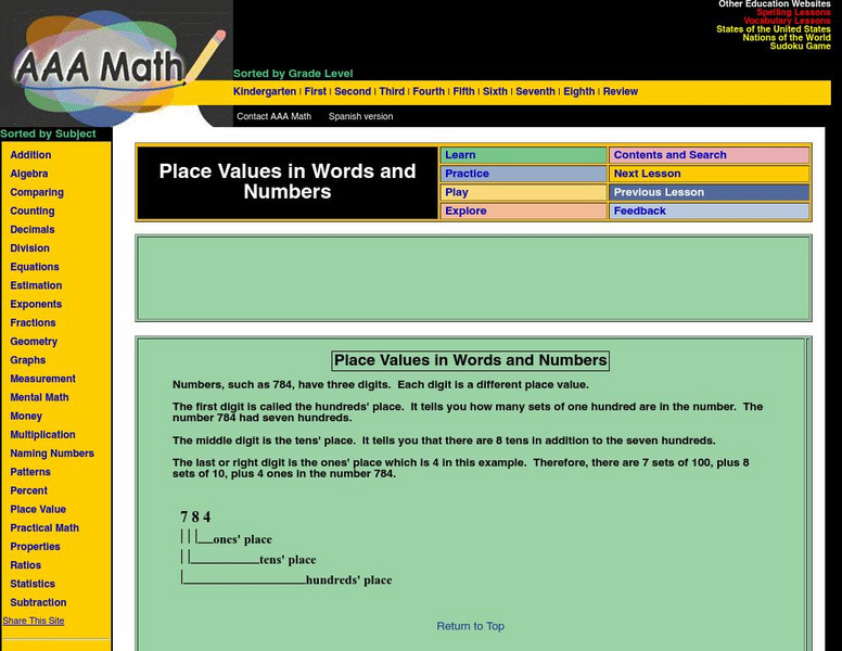A large collection of tutorials covering concepts in addition, subtraction, multiplication, division, and fractions.