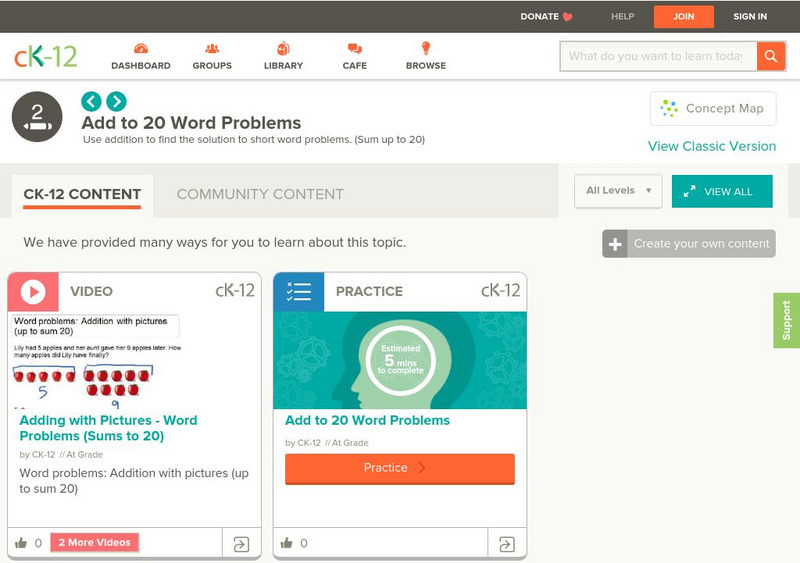 Ck 12: Elem Math: Adding With Pictures Word Problems Sums to 20