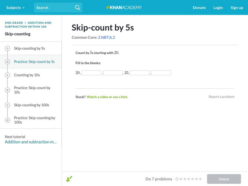 Practice counting by 5s. Students receive immediate feedback and have the opportunity to try questions repeatedly, watch a video or receive hints.