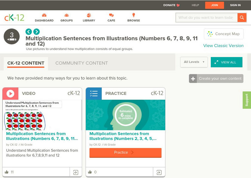 [Free Registration/Login may be required to access all resource tools.] The video models how to solve a multiplication word problem using pictures, writing the number sentence and solving. The video is followed by a series of practice...