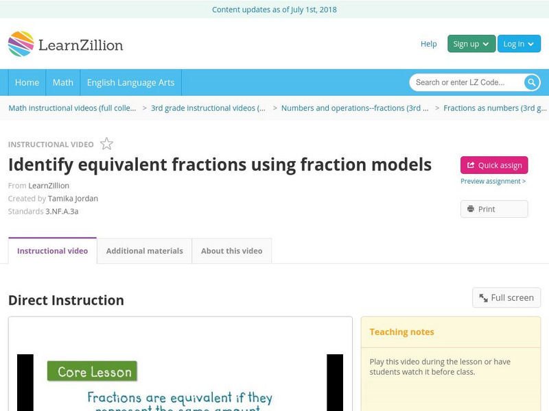 Learn Zillion: Identify Equivalent Fractions Using Fraction Models