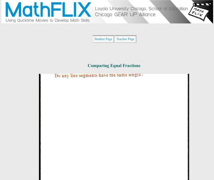 This QuickTime movie provides an opportunity to compare different fractions to see if they are equal. As you watch and listen to the teacher and students interact it helps clarify this concept.