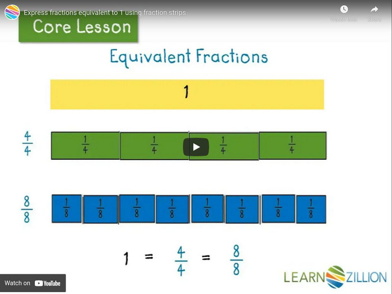 Learn Zillion: Express Fractions Equivalent to 1 Using Fraction Strips