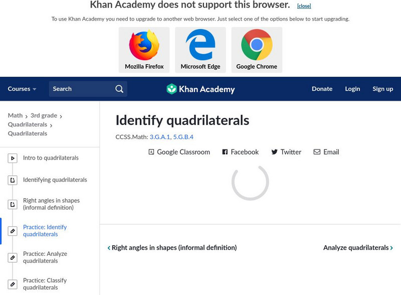 [Free Registration/Login may be required to access all resource tools.] Cursor down if needed to locate the video "Visually Identifying Quadrilaterals (Trapezoids, Parallelograms, Rectangles, Squares, Rhombi)." Students watch a video and...