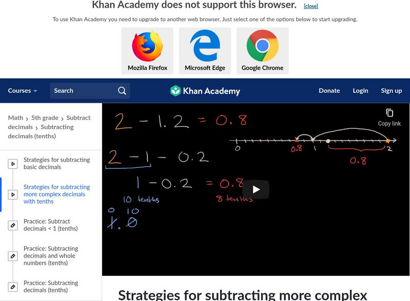 Khan Academy: Strategies for Subtracting More Complex Decimals With Tenths