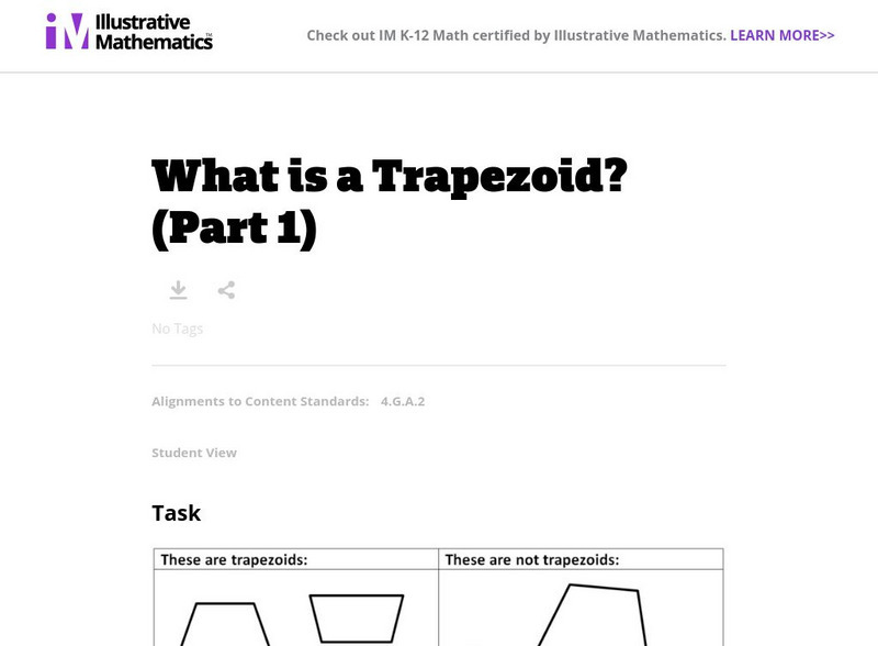 Illustrative Mathematics: 4.g What Is a Trapezoid? (Part 1)