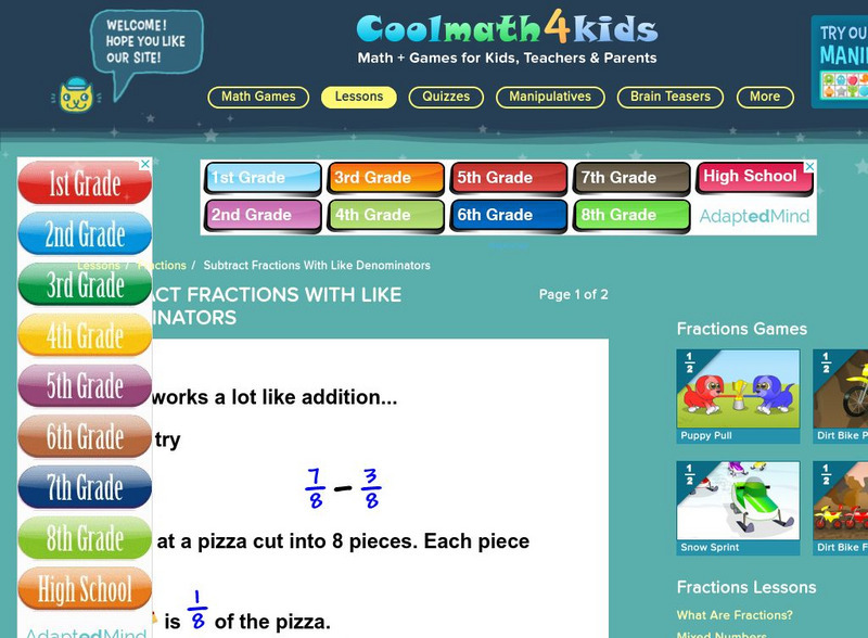 Coolmath: Coolmath4kids: Subtract Fractions With Like Denominators