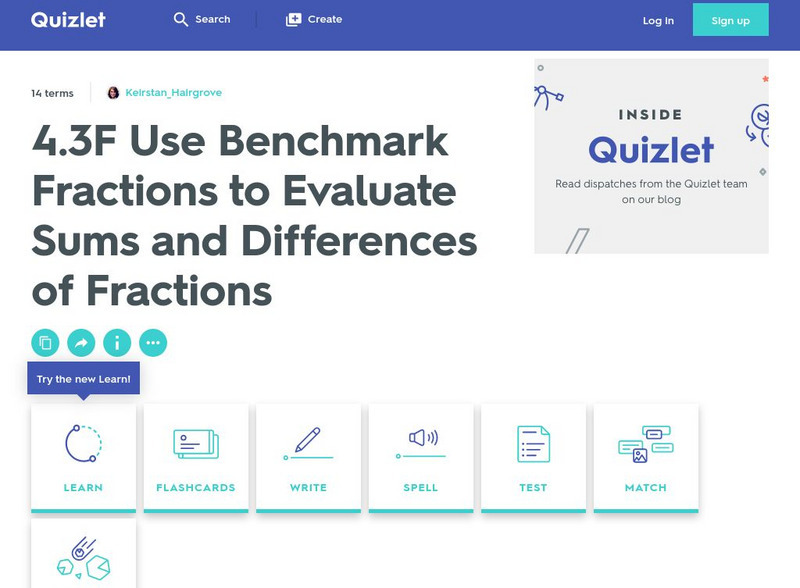 Quizlet: Use Benchmark Fractions to Evaluate Sums and Differences of Fractions