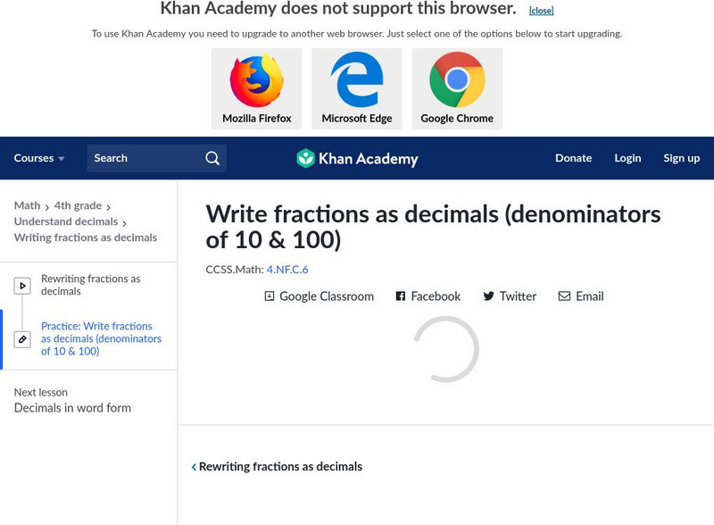 Test your understanding of rewriting fractions as decimals by answering these practice questions. Immediate feedback is given and hints or a video are available if needed.