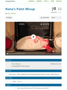 You would probably do anything for your Nana, including fixing her mistakes! Nana provided the wrong ratio to mix red and white paint, and she didn't realize it until after she mixed the paint. Your class now needs to figure out how to...