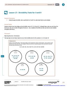 Who knew the sum of a number's digits gives such interesting information? The 18th installment of a 21-part module has scholars investigate division by three and nine. After looking at several examples, they develop divisibility tests...