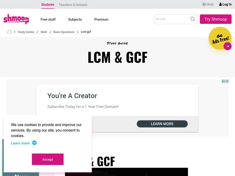 Students learn about the least common multiple and the greatest common factor. The resource consists of notes, step-by-step examples, and practice problems with solutions.