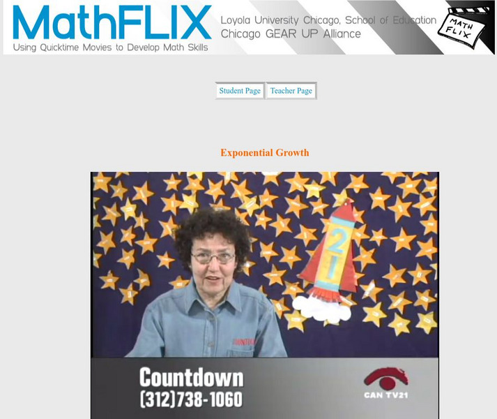 This QuickTime movie provides a great introduction to exponents and writing larger numbers using exponents. As you watch and listen to the teacher and students interact it helps clarify the thinking behind applying this concept.
