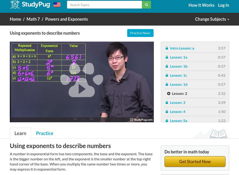 Watch this short online tutorial to gain an understanding of exponents. [6:41]