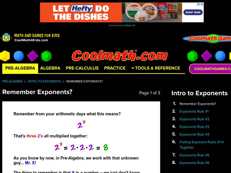 Varsity Tutors: Hotmath: Algebra Review: Zero Exponents