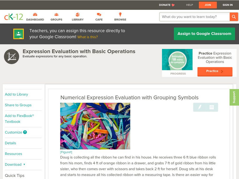 Ck 12: Algebra: Numerical Expression Evaluation With Grouping Symbols