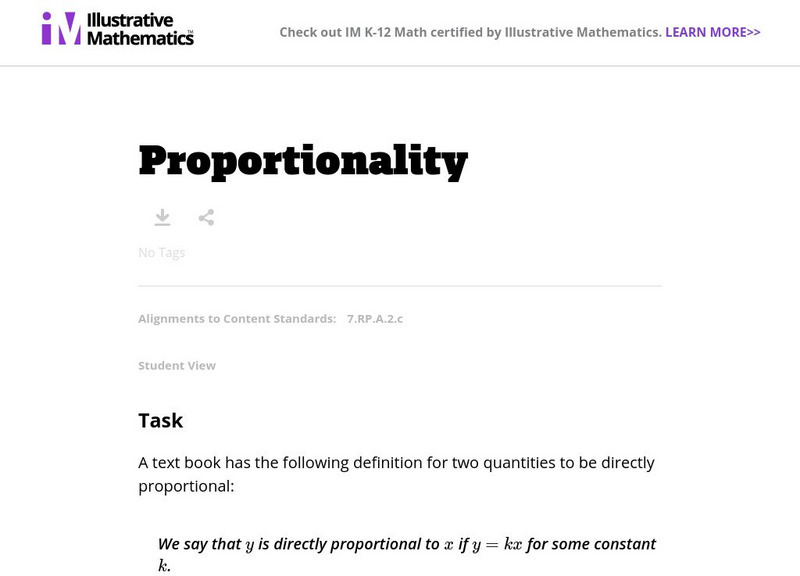 This lesson plan explores how to recognize and represent proportional relationships between quantities.