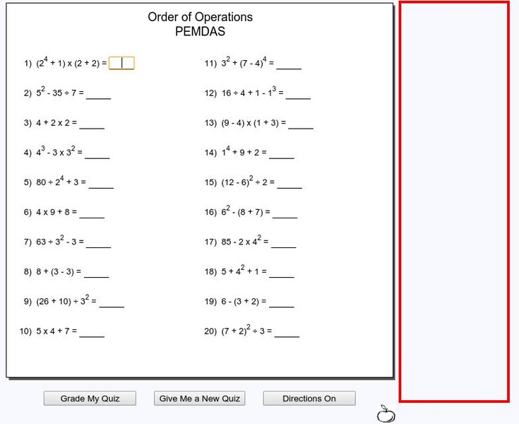 Varsity Tutors: Aplusmath: Order of Operations Homework Helper
