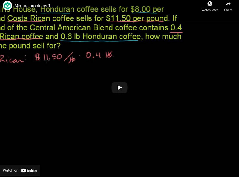 Khan Academy: Algebra I Worked Examples: Mixture Problems 1