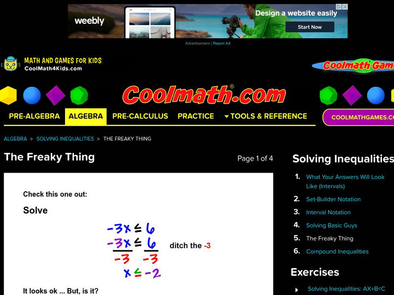 This CoolMath resource will help students learn how to solve inequalities. Dividing by negative numbers is featured.