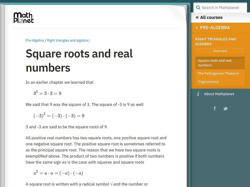 Math Planet: Pre Algebra: Square Roots and Real Numbers