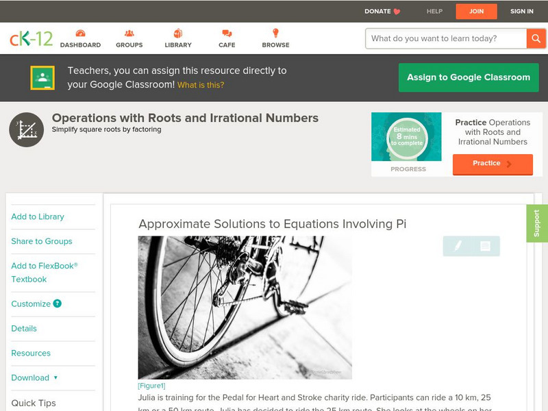 [Free Registration/Login may be required to access all resource tools.] Find approximate solutions to equations involving irrational numbers.