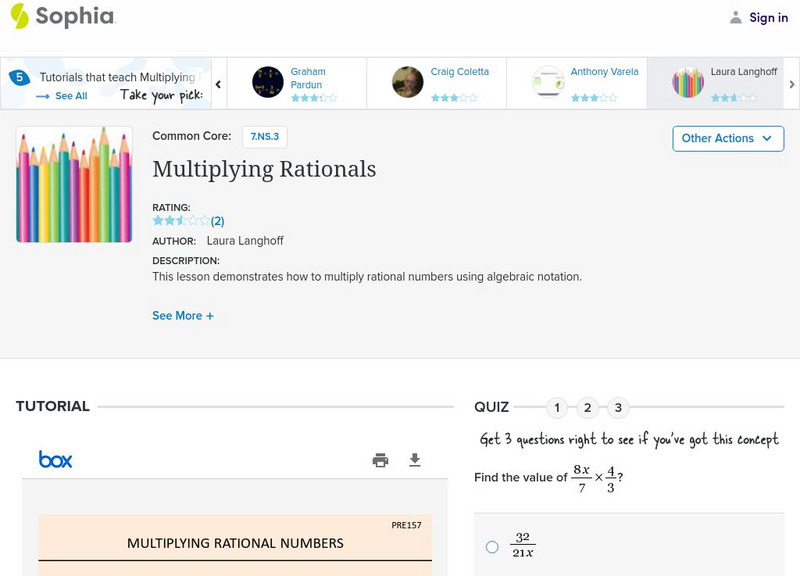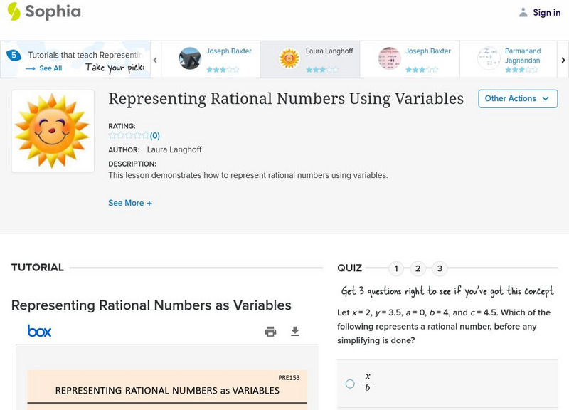 Sophia: Representing Rational Numbers Using Variables: Lesson 2