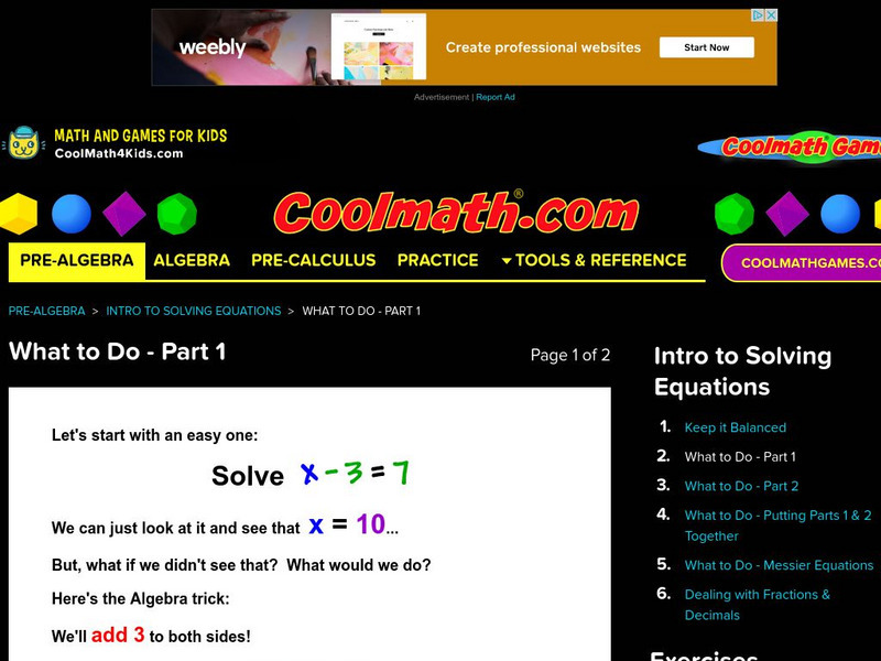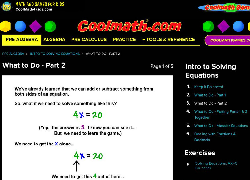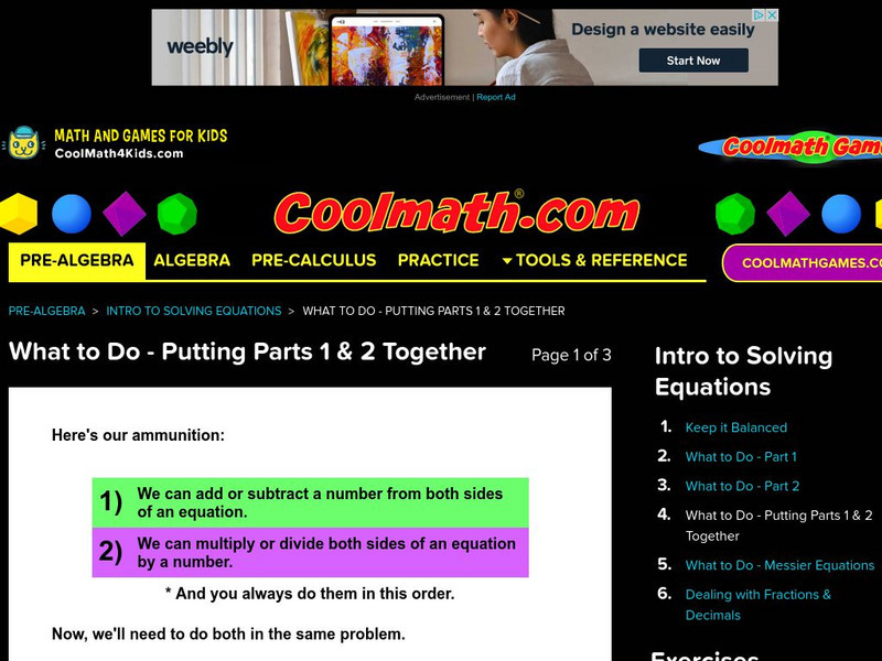 Coolmath: Solving Equations What to Do Putting Parts 1 & 2 Together