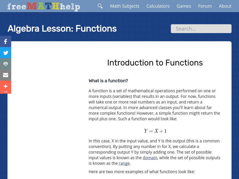 Students learn about functions in algebra. The resource includes detailed examples and definitions.