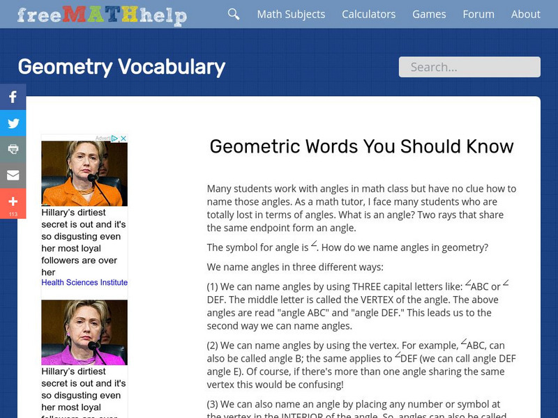The lesson investigates vocabulary used in Geometry. Definitions and examples are included.
