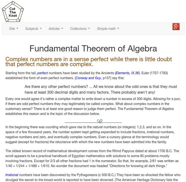 Contains detailed historical information regarding the Fundamental Theorem of Algebra and the various proofs that were developed. Click on the links at the bottom of the page to access all the information.