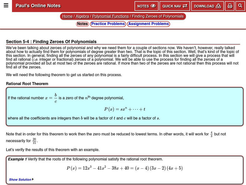 Paul's Online Notes: Algebra: Finding Zeroes of Polynomials