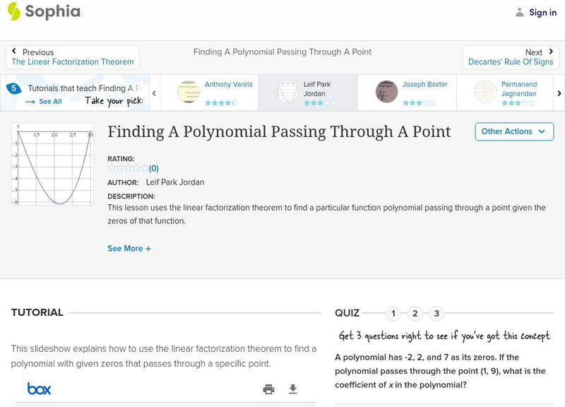 Sophia: Finding a Polynomial Passing Through a Point: Lesson 4