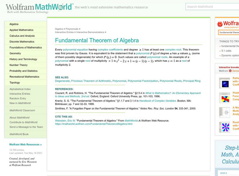 Wolfram Mathworld: Fundamental Theorem of Algebra From Mathworld