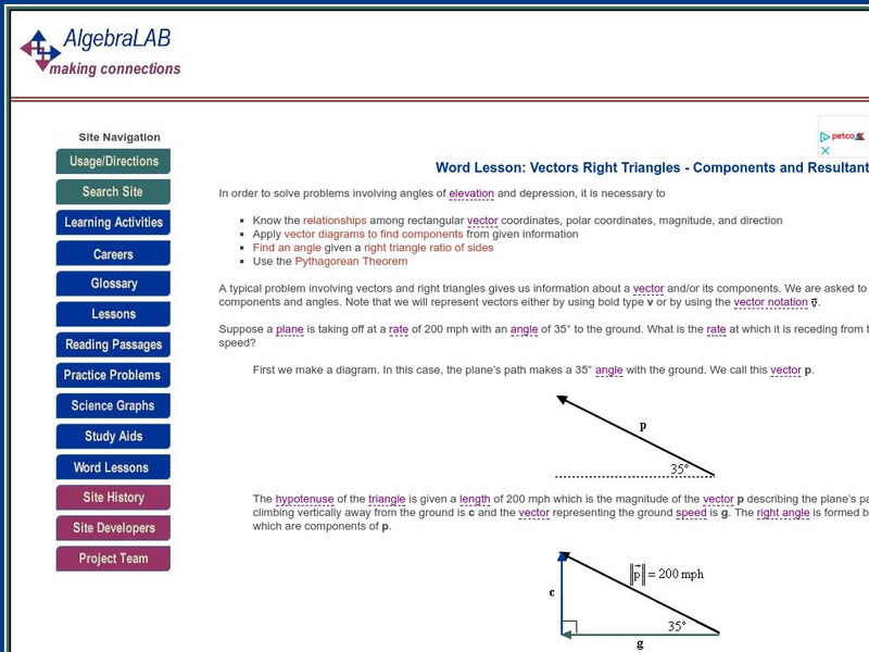 Algebra Lab: Word Lesson: Vectors Right Triangles Components and Resultants