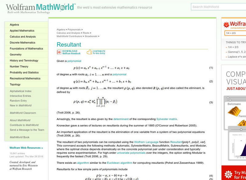 Defines resultant as the result of combing two or more vectors. Includes formulas and links to related terms.