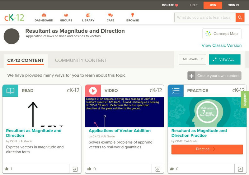 Ck 12: Trigonometry: Resultant as Magnitude and Direction
