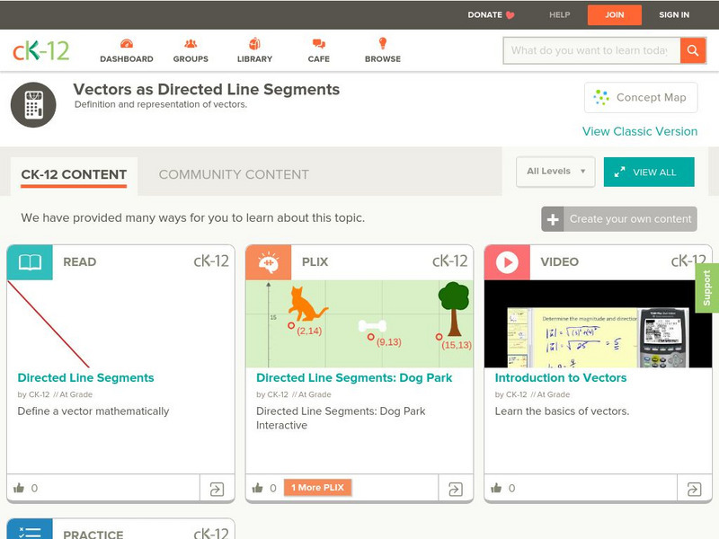 [Free Registration/Login may be required to access all resource tools.] Resources for learning about vectors as directed line segments.