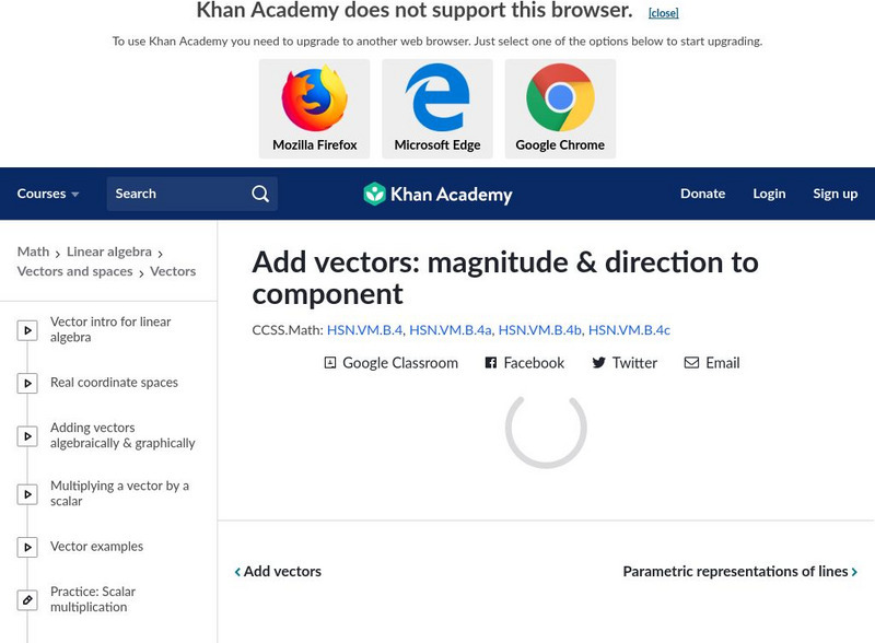 Khan Academy: Add Vectors: Magnitude and Direction to Component