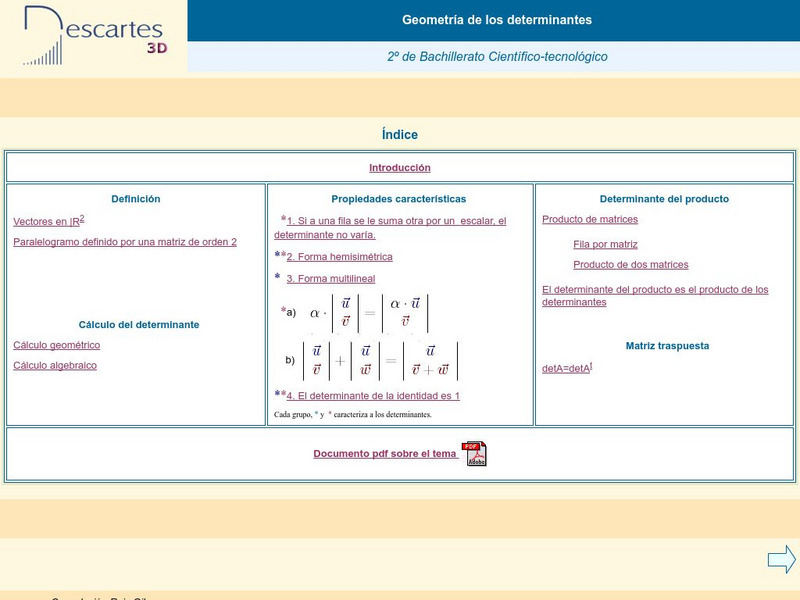 In Spanish. In this interactive session you will study the second order determinant and its properties. Both methods geometrically and algebraically are presented.