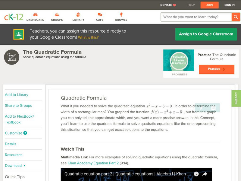 [Free Registration/Login may be required to access all resource tools.] Learn how to use the quadratic formula.
