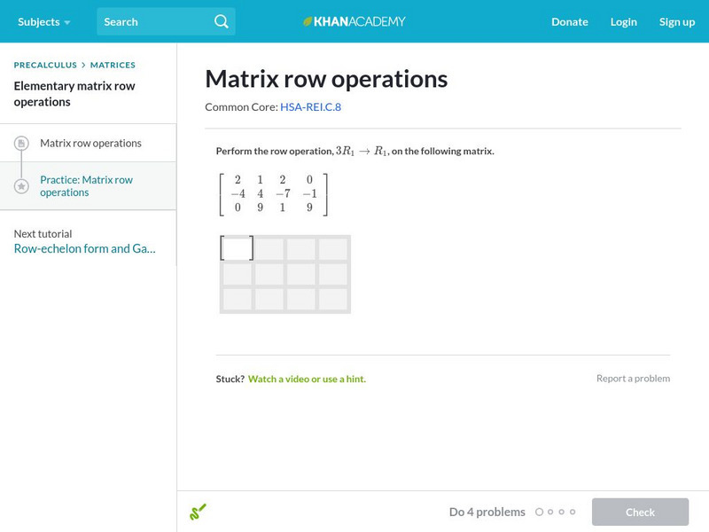 Determine the matrix that is the result of performing a specific row operation on a given matrix. Students receive immediate feedback and have the opportunity to try questions repeatedly, watch a video or receive hints.