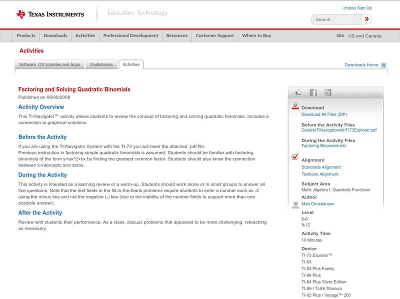 Texas Instruments: Factoring and Solving Quadratic Binomials